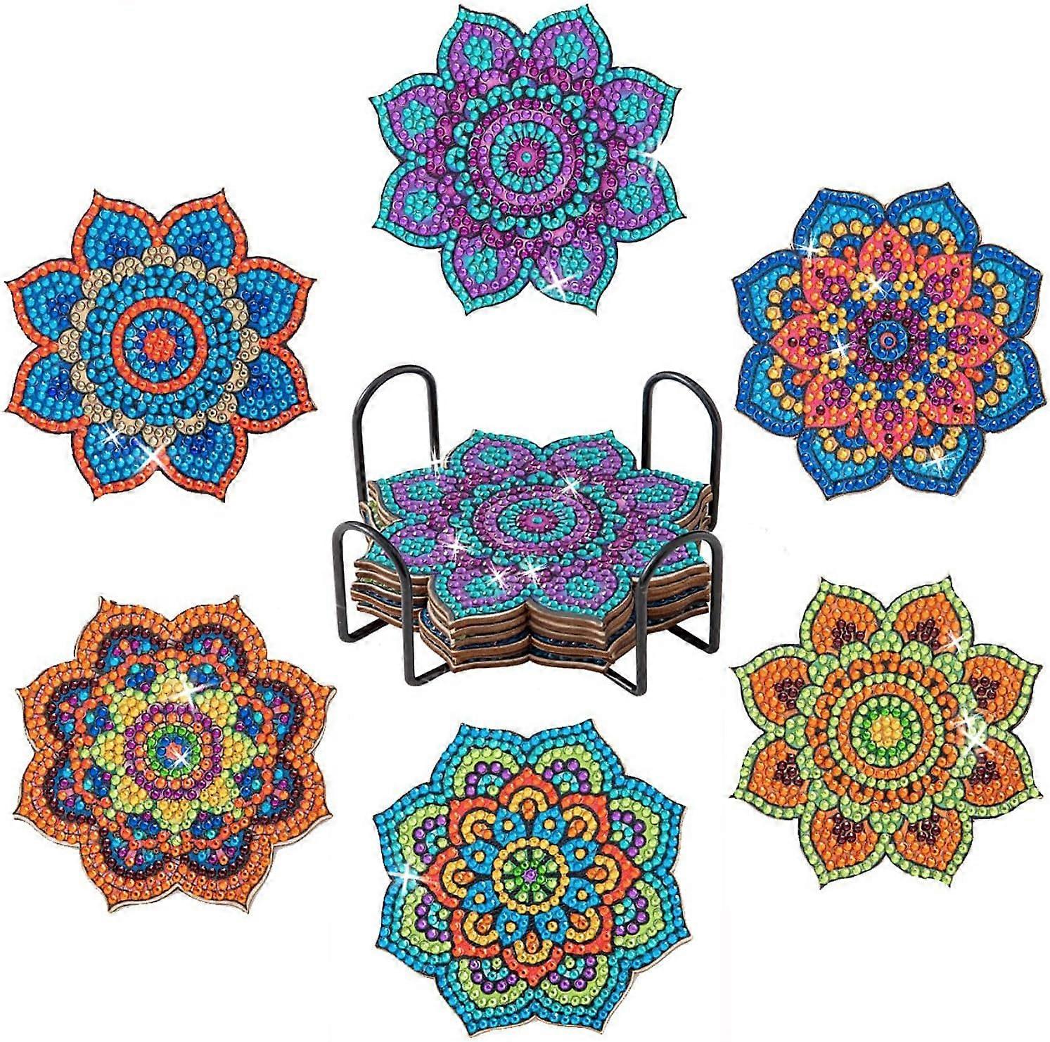 Diamond Painting Coasters with Holder, 6 Packs DIY Mandala Coasters Diamond Painting Kits for Beginners, Adults & Kids - Art Craft Supplies for Birthd