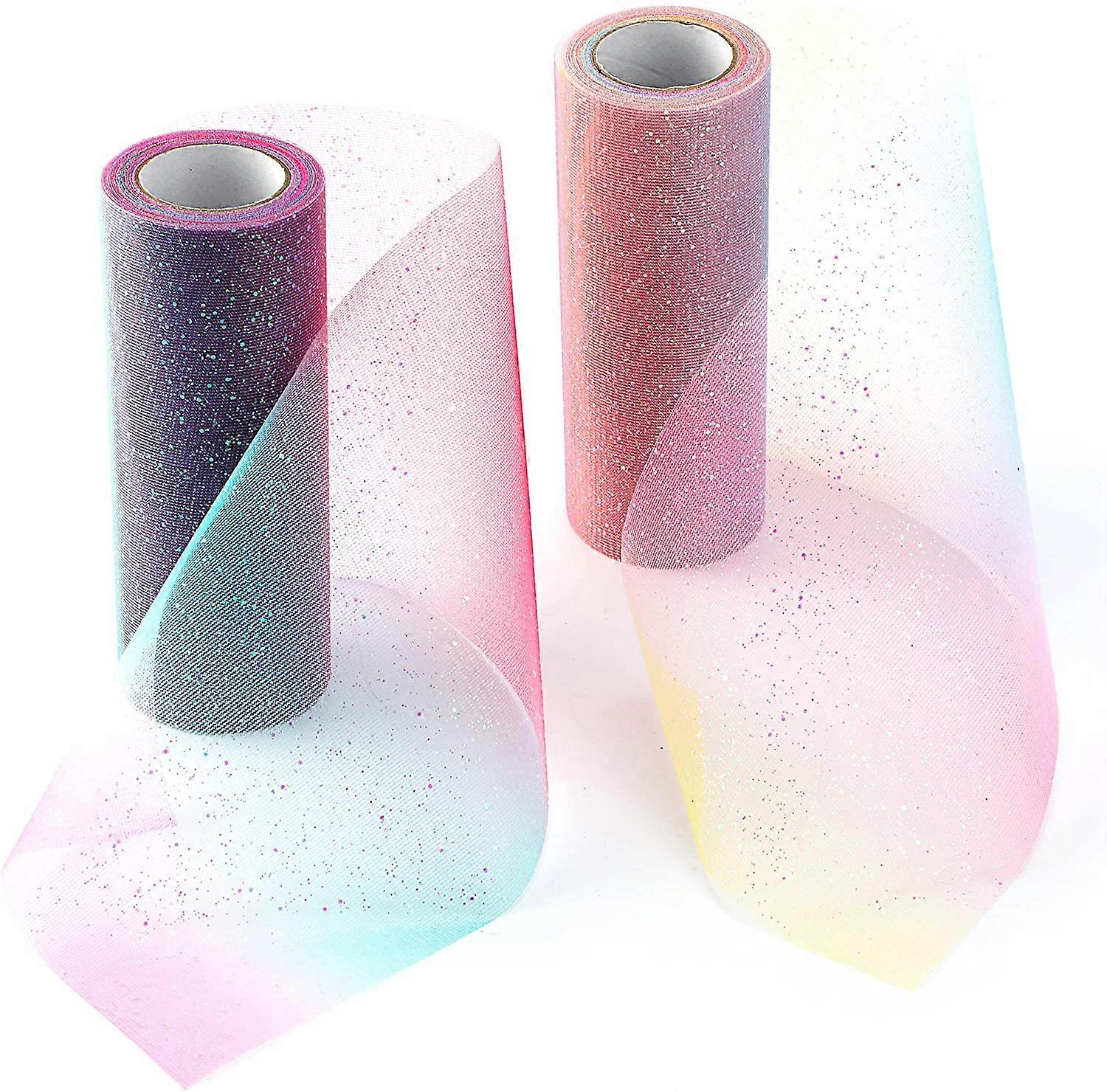 6inchx 10Yards / 30FT Rainbow Glitter Tulle Rolls Fabric Tutu Ballet Skirt Table Runner Table Ribbon Tulle Net for Party Tulle Ribbon