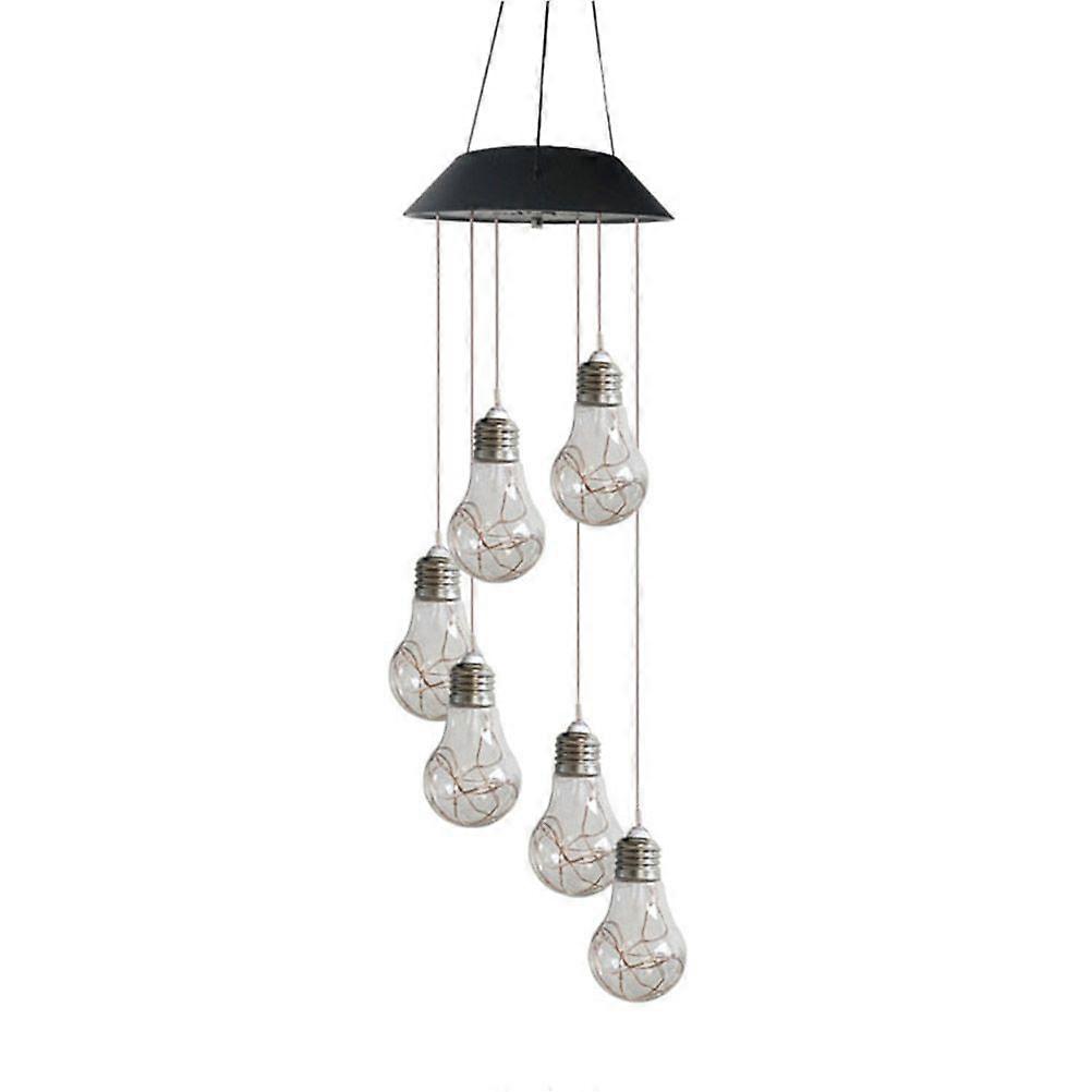 6LED Solar Bulb Wind Chime Light Hanging Outdoor Lamp Decorative Night Light for Garden Courtyard (Black Shell)