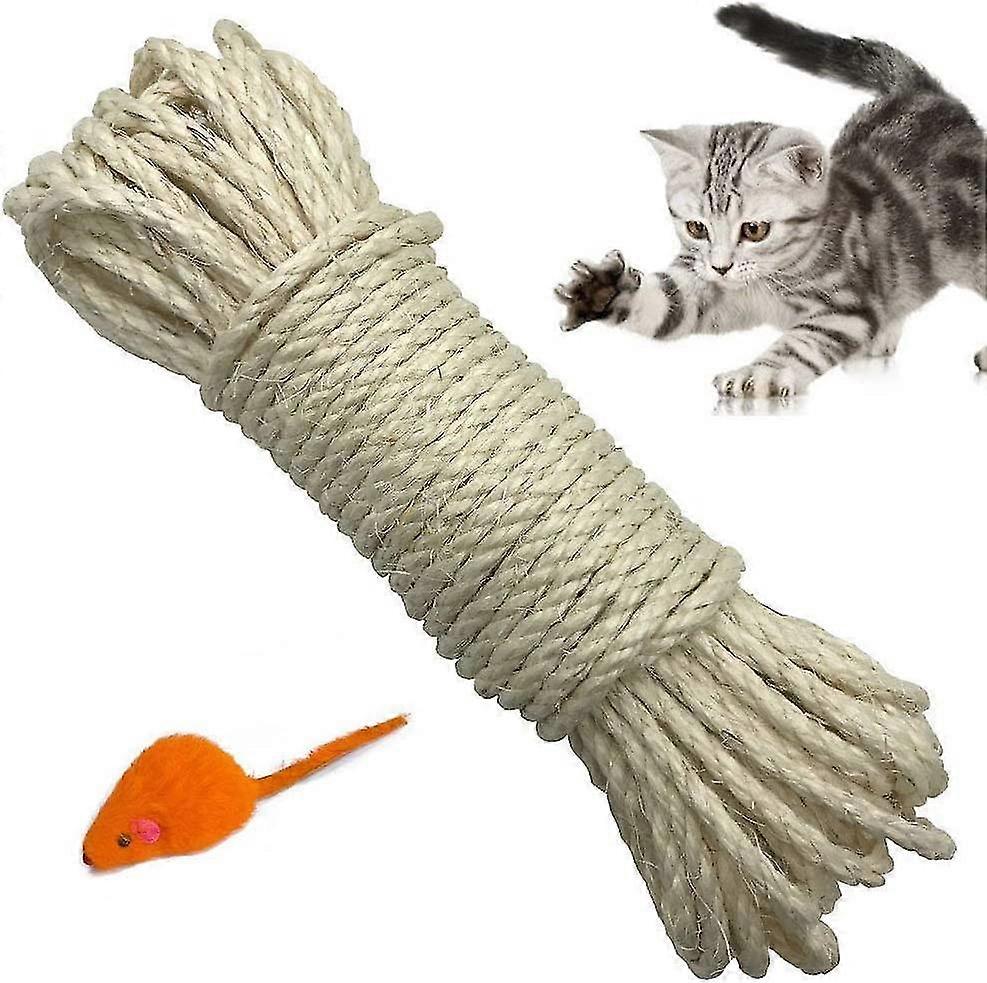 6mm Natural Sisal Rope Replacement Old Rope Ideal Accessory To Replace Cat Tree Posts, Toy Included (30m, White)