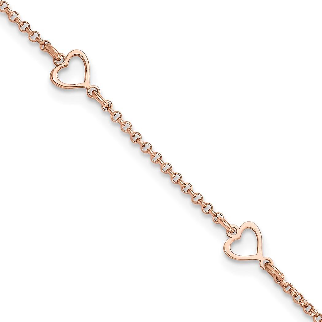 6mm Sterling Silver Rose Tone Hearts Plus 1in Extension Anklet - 9 Inch - 2.0 Grams In Sterling Silver - - Charm/Element Width: 6 mm - Width of Item: 6 mm - Charm/Element Length: 8 mm - Length of Item: 10 in - Chain Length: 9 in - Chain Width: 1.7 mm - Clasp /Connector: Spring Ring - Finish: Polished - Chain Type: Rolo - Feature: Solid - Extender Length: 1 in -