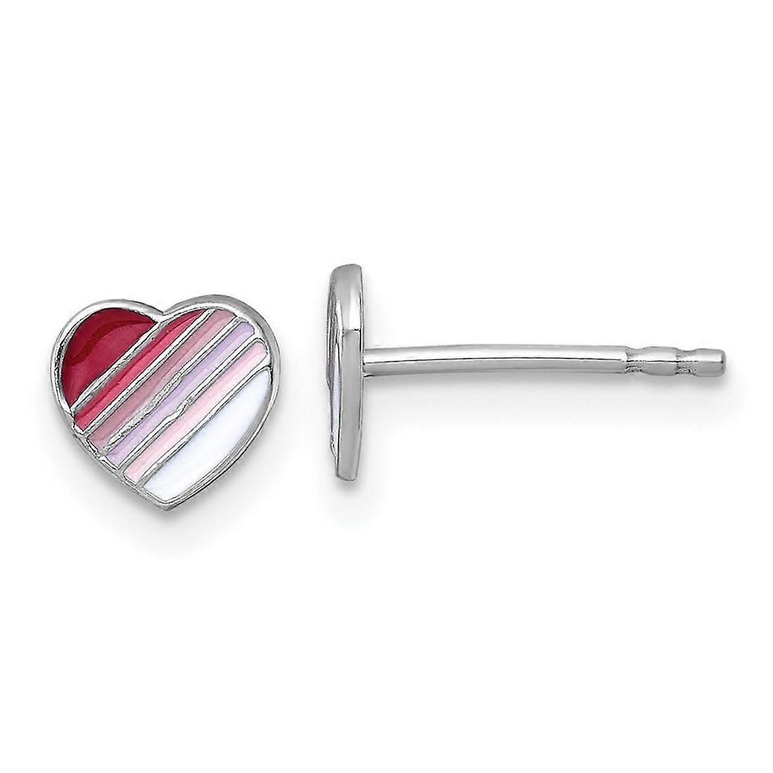 6mm Ss Rhodium Plated Enamel Striped Love Heart Post Earrings 6x6mm Wide 1.5mm Thick Stud Earring