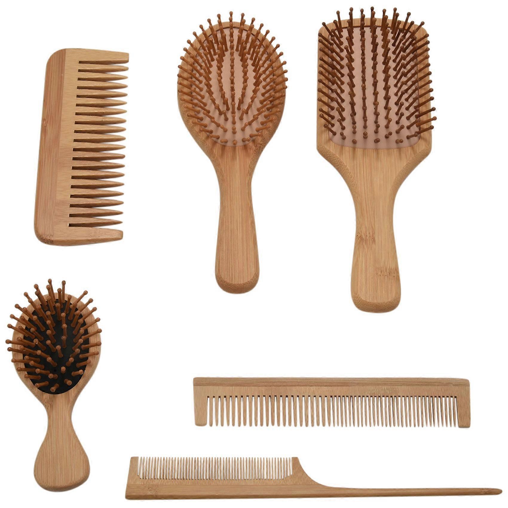6PC/Set Wood Comb Healthy Paddle Cushion Hair Loss Massage Brush