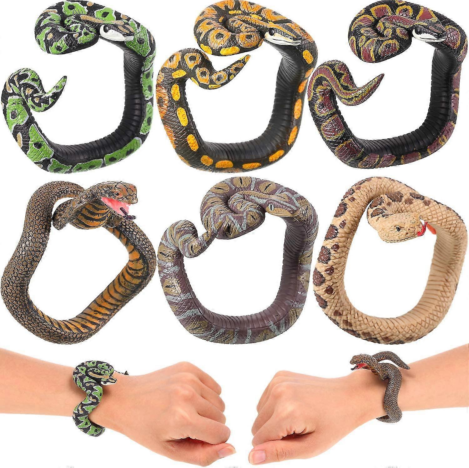 6pcs Toy Snake Bracelet Pvc Simulated Snake Wristband Fake Snake Wristband Halloween Prank Toys Horror Prank Toys Party Supplies Realistic Sna