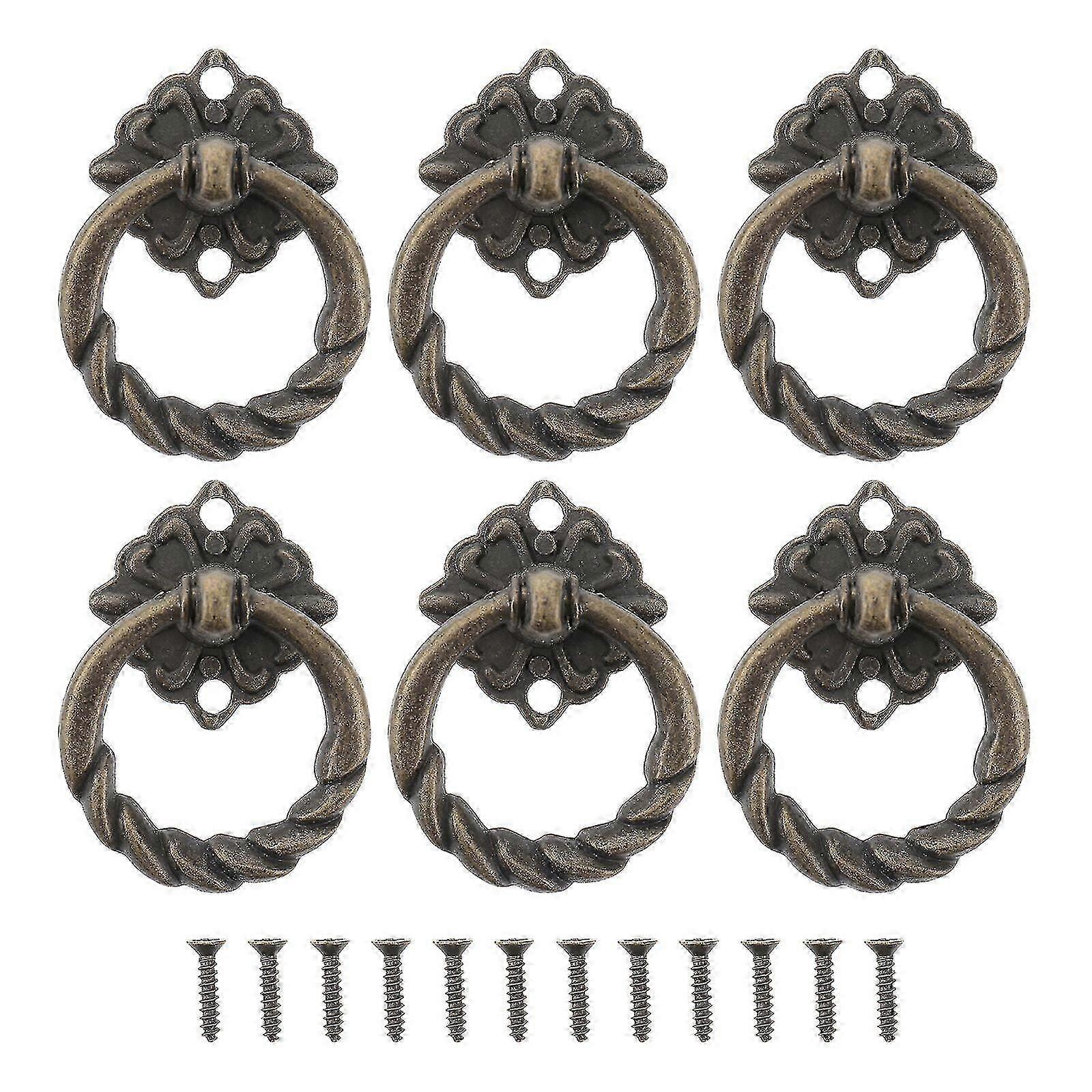 6pcs Vintage Retro Style Kitchen Cabinet Cupboard Dresser Door Drawer Ring Pull Handles Knobs - Size L (Antique Brass)
