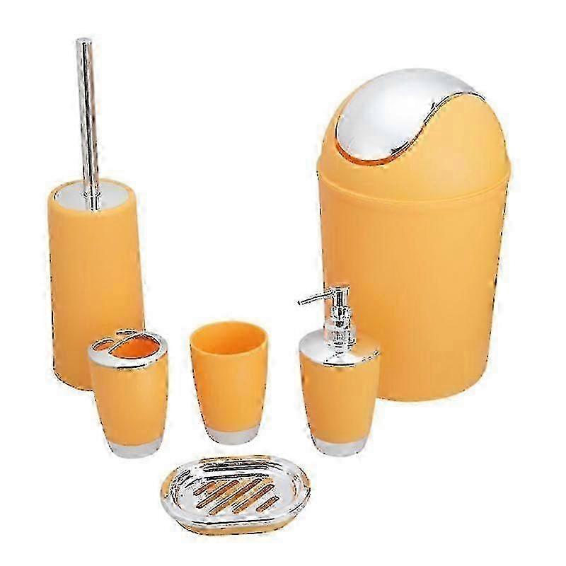6pcs Orange Bathroom Set: Lotion Bottle, Toothbrush, Cup, Bin