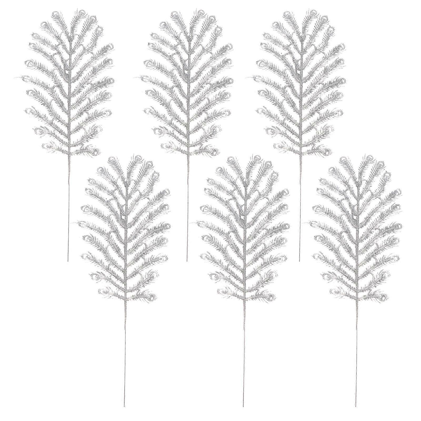 6pcs Creative and Novel Christmas DIY Artificial Simulated Meranti Tail DIY Craft Decoration for Gift (Silver)