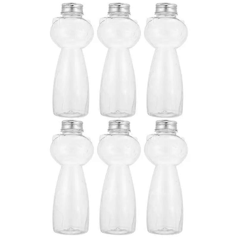 6pcs Creative Cat Designed Juice Bottles Beverage Bottles Milk Tea Containers Cold Milk Tea Juice Bottle