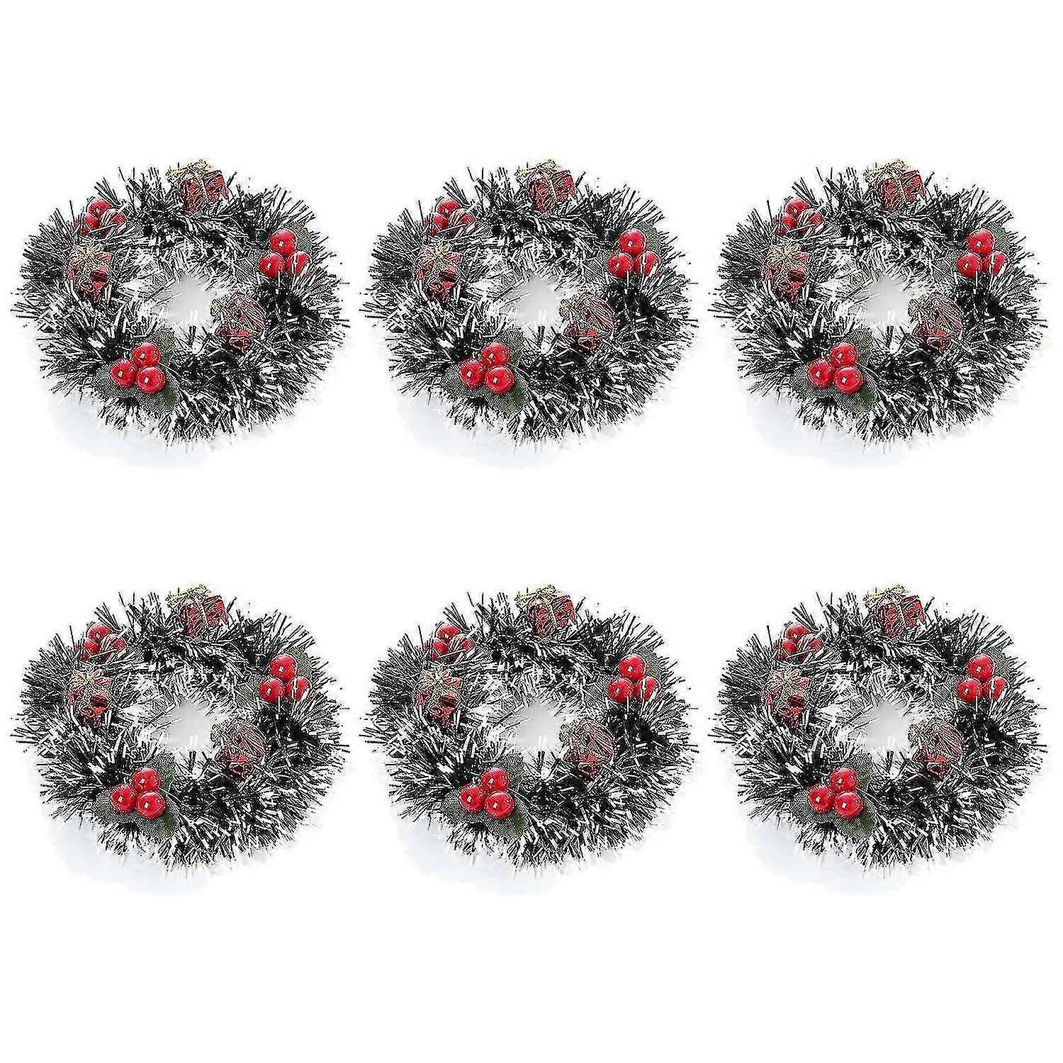 6pcs Christmas Candle Rings, Small Candle Wreaths Artificial Berries Snowy Pine Needles Candle Wreat