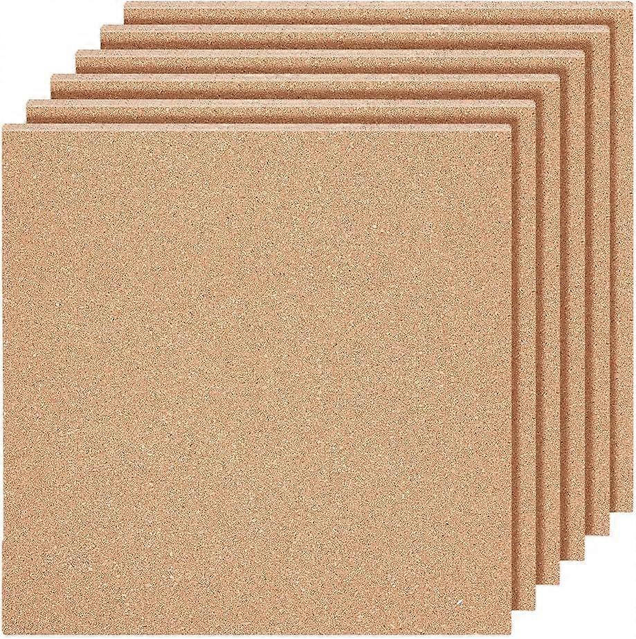 6PCS Cork Sheet 12x12inch Square Cork Sheet Sand Brown Coasters Cork Board for Bulletin Boards Wall Decorations and DIY Crafts 4mm Thick