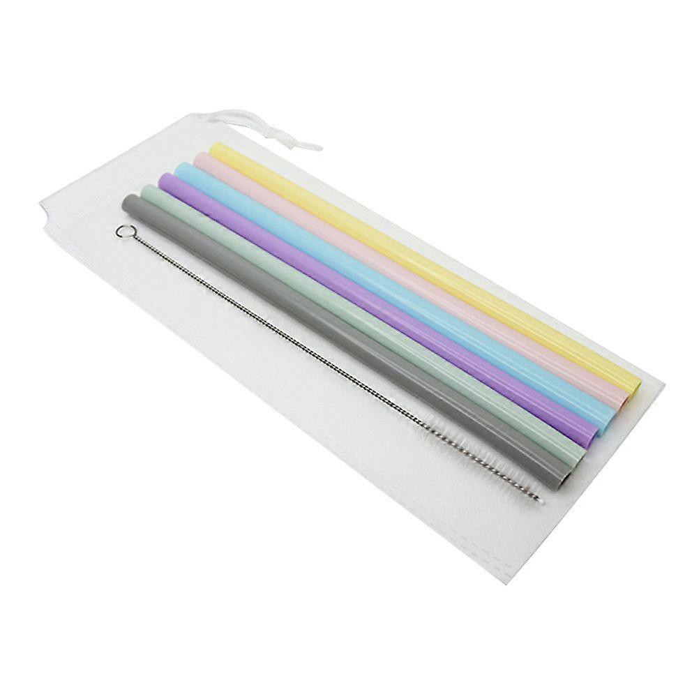 6PCS Silicone Straw Juice Milk Tea Drink Cocktail Straight Tube Environmental Protection Reusable Thin Tube with A Cleaning Brush and Bag