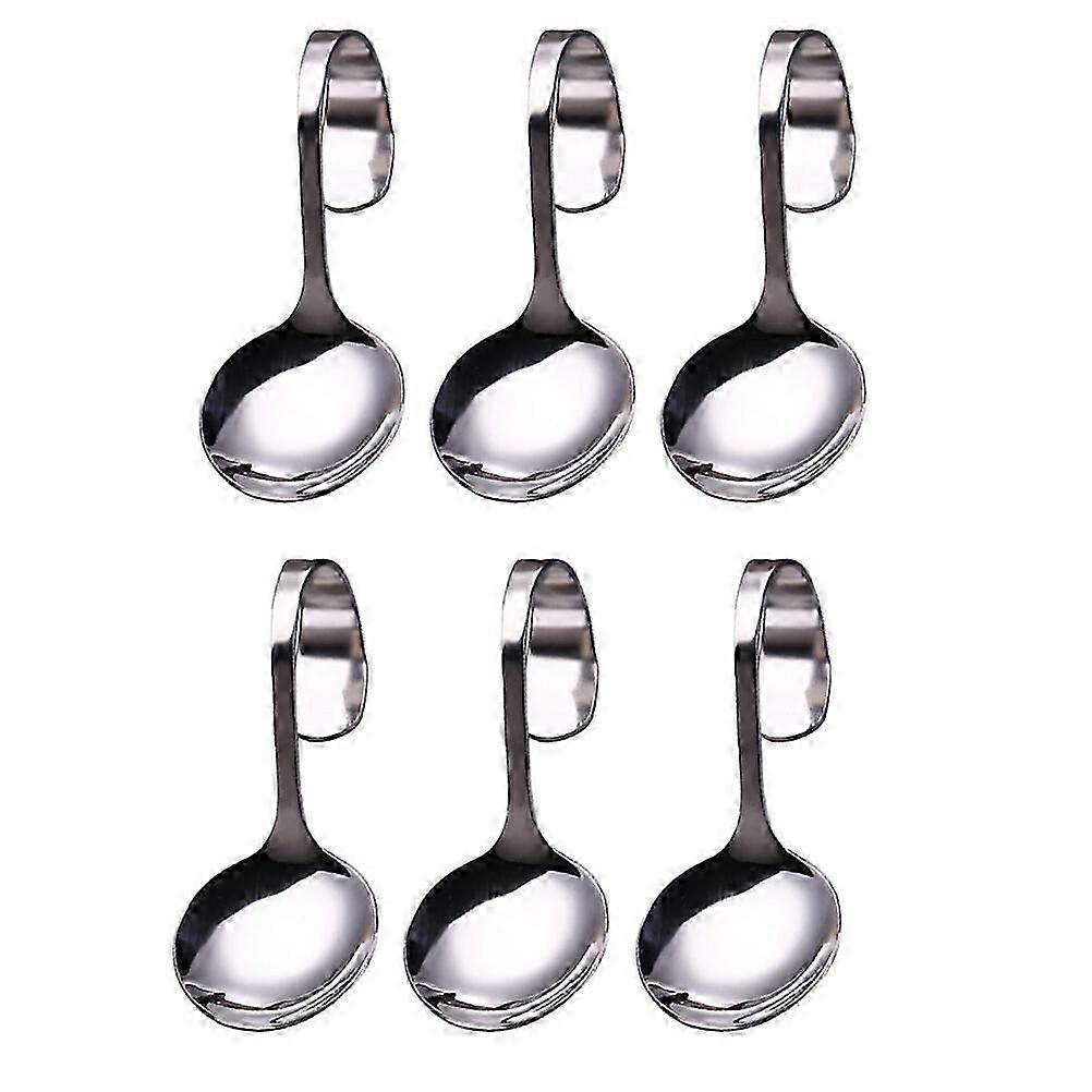 6pcs Stainless Steel Curved Handle Spoons Dessert Scoops Salad Spoon for Home