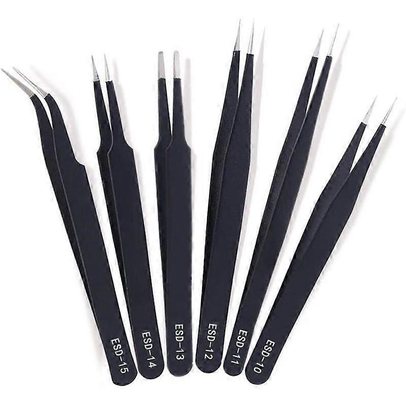 6pcs Stainless Steel Precision Electrostatic Tweezers Repair Tools Used for Computer Work etc