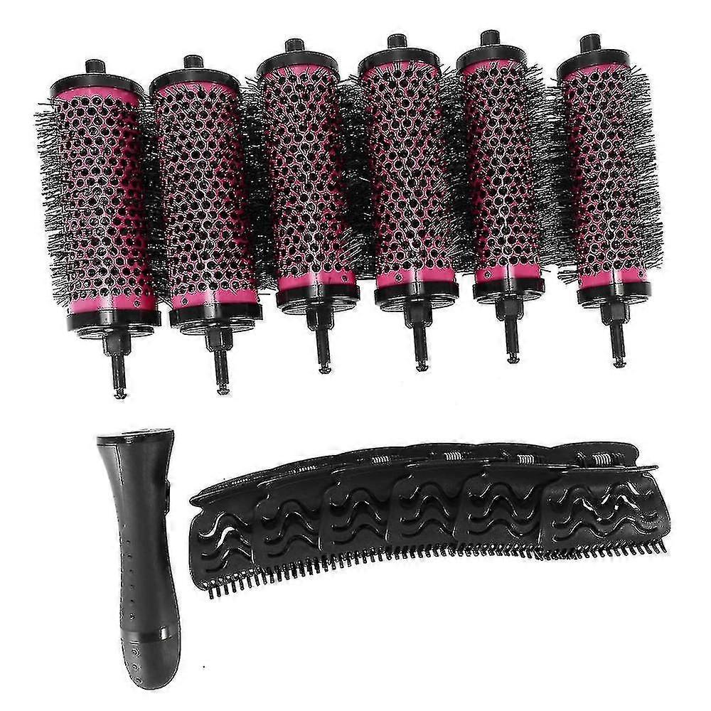6pcs/set 3 Sizes Detachable Handle Hair Roller Brush With Positioning Clips Aluminum Ceramic Barrel