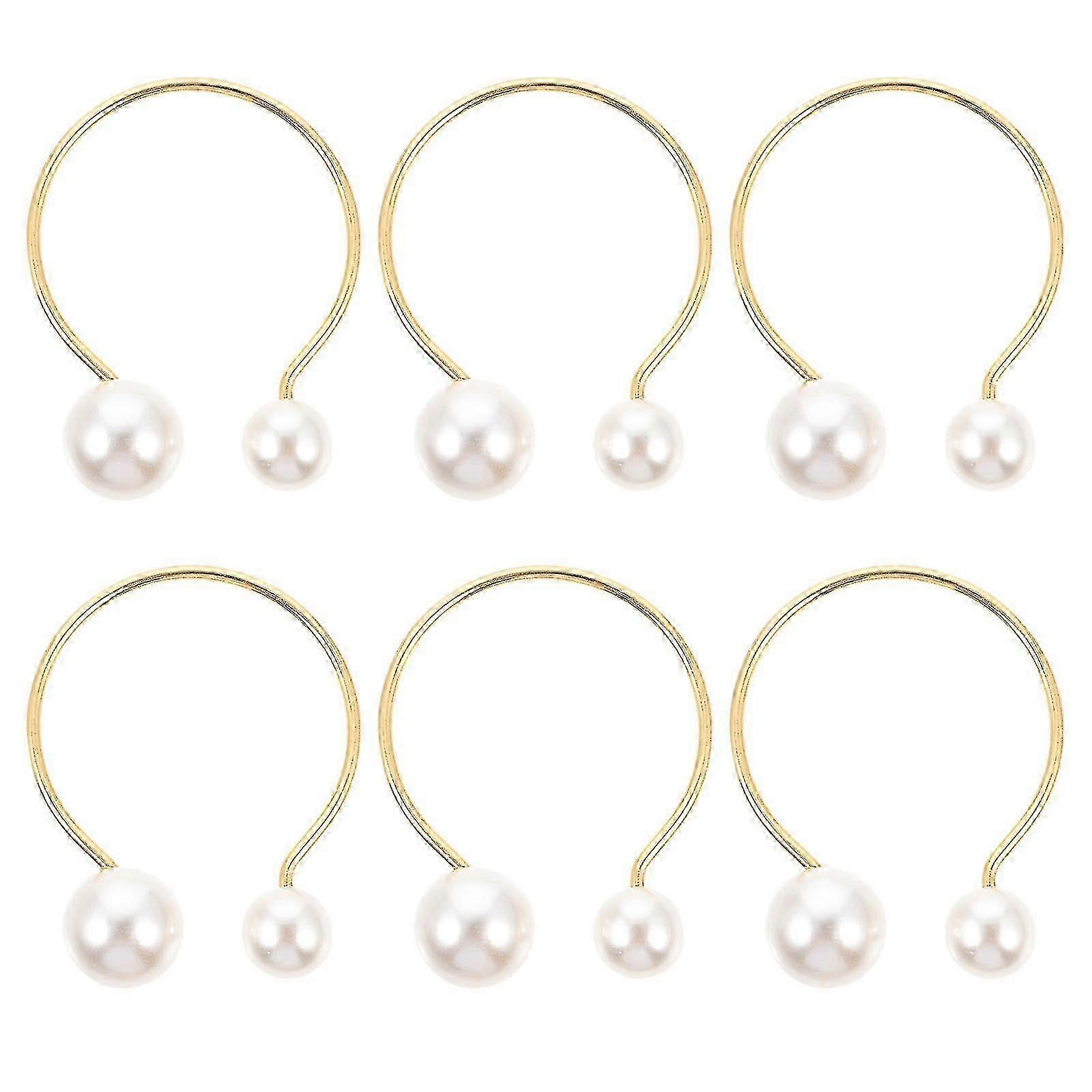 6pcs Napkin Buckle Metal Napkin Ring Pearl Napkin Circle Table Setting Supply