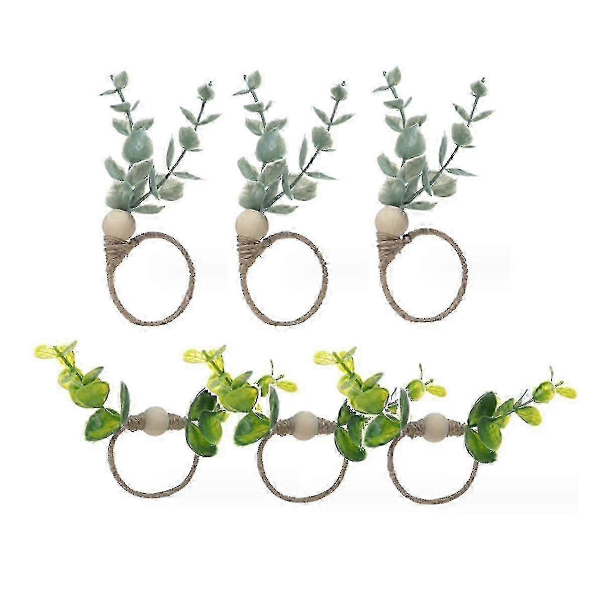 This napkin ring is made of high quality solid wood, plastic and linen. It combines leaves with wooden beads and looks very and lively. The edges are smooth and neat enough to scratch your napkins and can be used over and over again. Our 2 styles of wood bead napkin rings are stunning and create a ambience to your table, simple yet beautiful. When you use it on your dining table, it can make your dining table look more elegant and high-end. The classic design pairs well with most napkins and towels. Exquisite napkin rings for holidays, Christmas, 's Day, Halloween, Easter, Thanksgiving, weddings, anniversaries or birthdays. Can add charm to you and impress your guests. Colour:green Material: rope + plastic Package Contents: 6 x eucalyptus napkin rings in 2 styles Only the above package content, other products are not included. Note: Light reflection and different displays may cause the color of the item in the picture a little different from the real thing. The measurement allowed error is +/- 1-3cm.