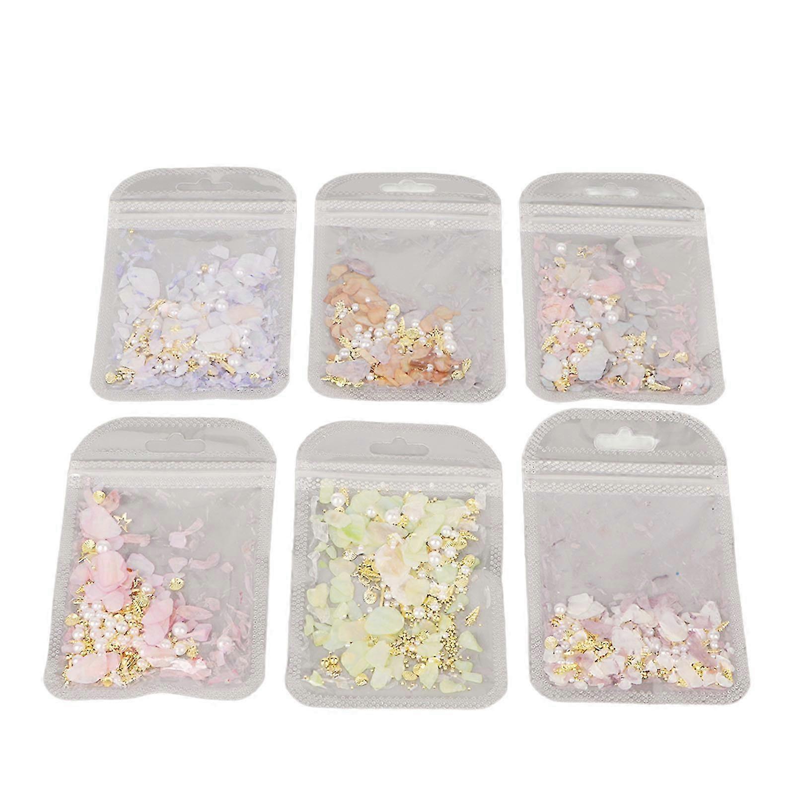 6pcs Nail Art Decoration Set Colorful Glitter Seashell Fragments Nail Art Decoration Kit for Manicure