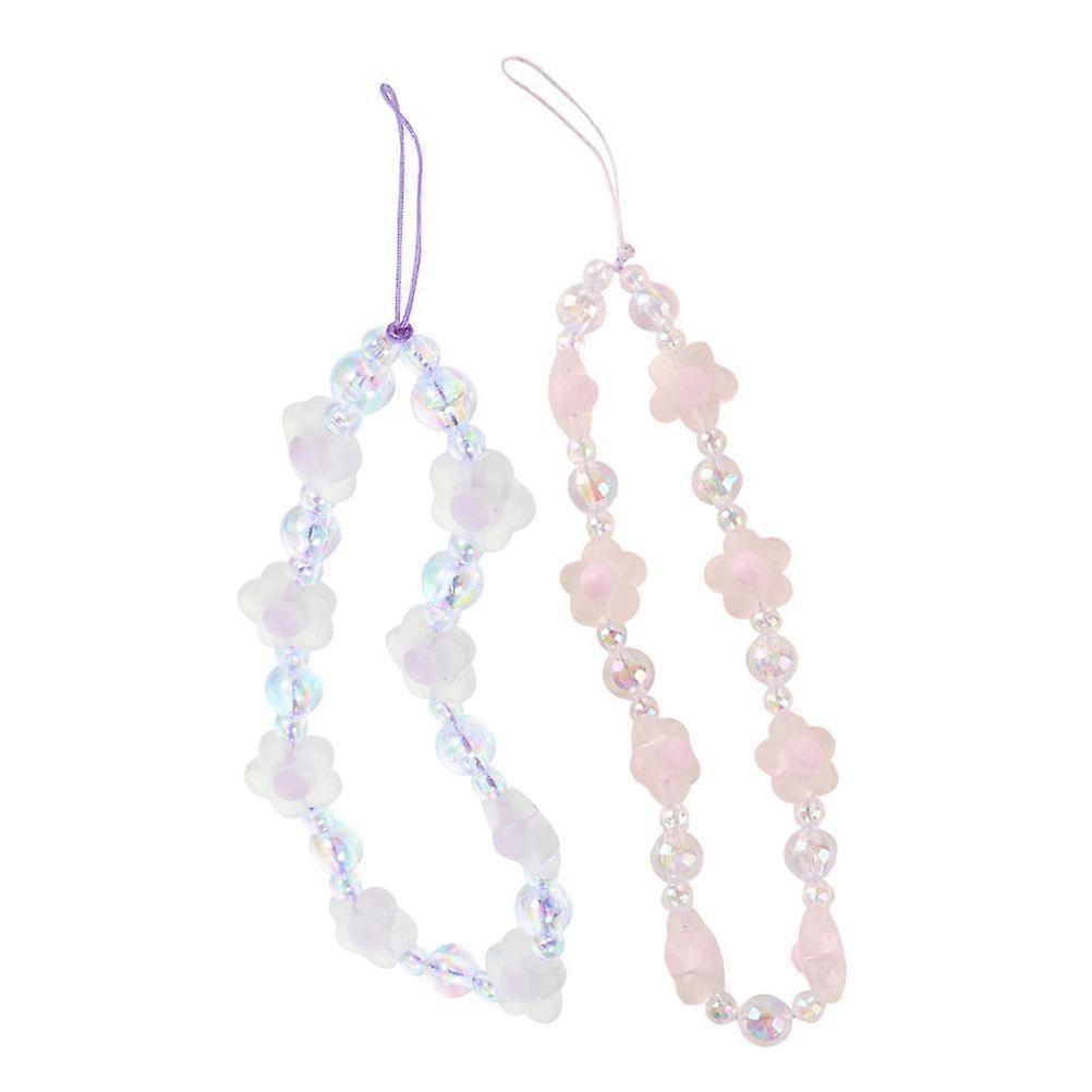6pcs Beaded Phone Wrist Strap: Flower Phone Charm Cute Lanyards Beaded Wrist Strap For Camera Bag Keychain Charm Assorted Color