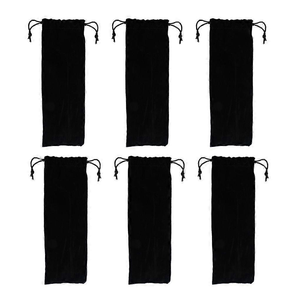 6PCS Flannel Pouch Bag Stainless Steel Straw Carrying Case Practical Drinking Straws Cutlery Fork Spoon Storage Bag (Black)
