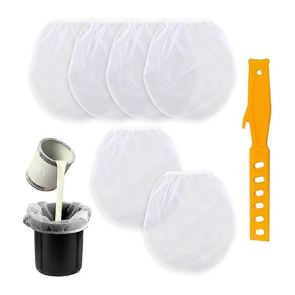 6pcs Paint Filter Bag 2 Gallon, White Bucket Strainer Plastic Putty Knife Elastic Top Opening Paint for Paint Gardening