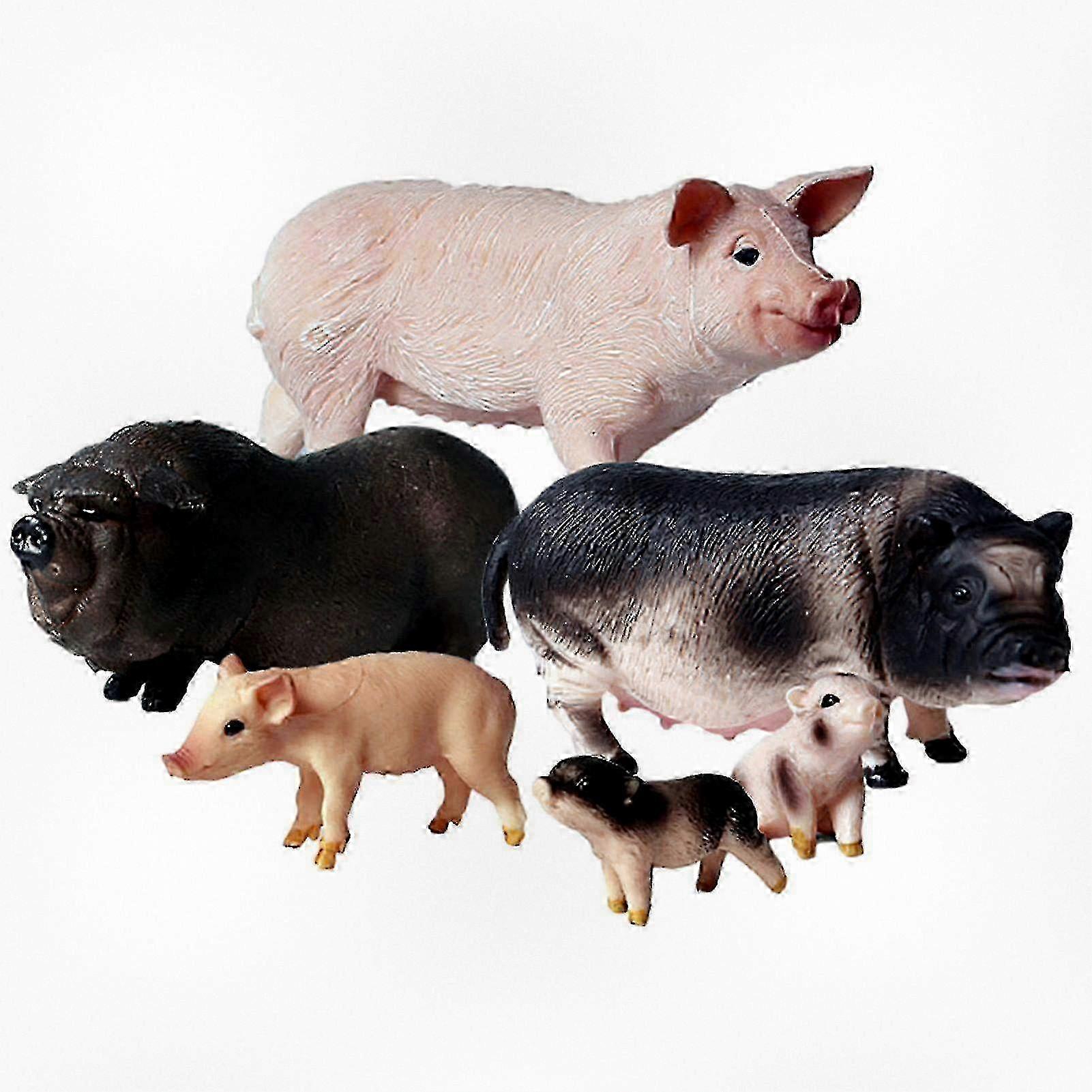 6pcs Mini Pig Figurine Set - Realistic PVC Farm Animal Toys for Kids, Wild Boar Decor, Educational Craft Collection, Small Livestock Statues