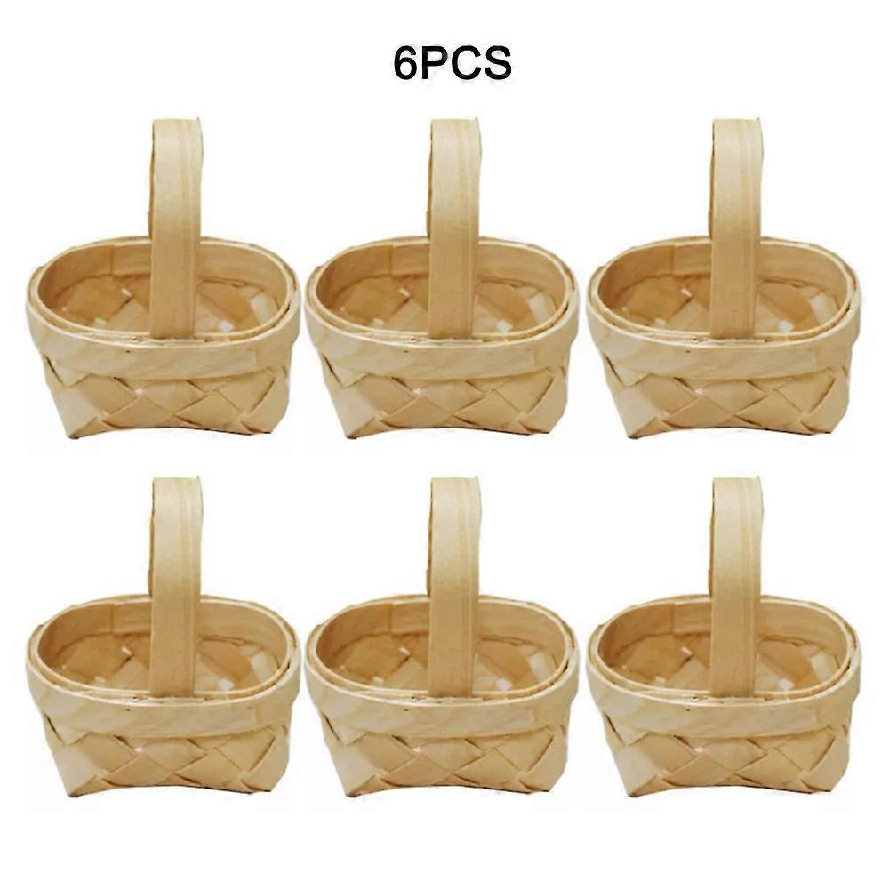6pcs Mini Rattan Baskets with Net Yarn and Red Bows for Toys