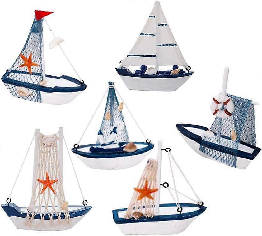 6pcs Sailboat Model Craft Decoration Wooden Fishing Boat Marine T