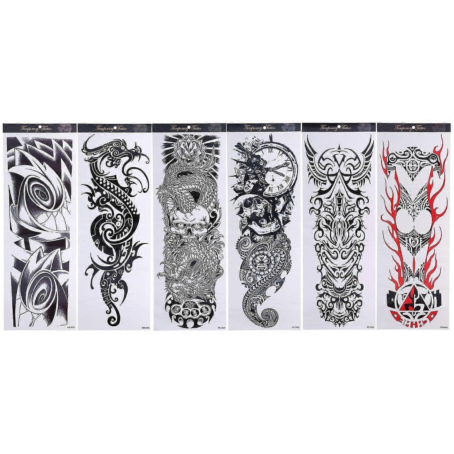 6PCS Temporary Tattoo Sticker Waterproof Full Arm Temporary Tattoos for Arms and Legs
