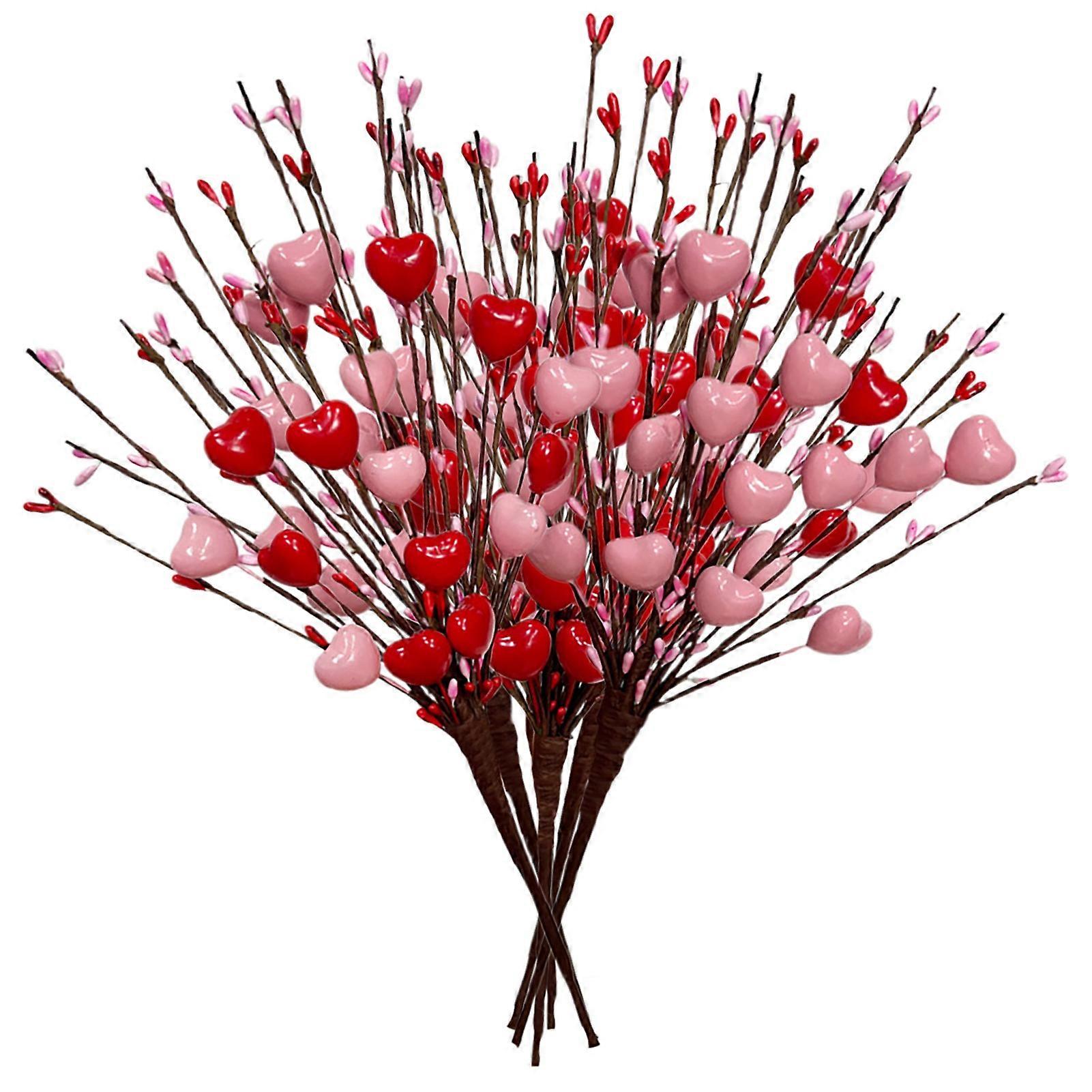6pcs Artificial Heart Berry Picks Valentine Holiday Decorative Heart Berries Stems Branches for Home Decor