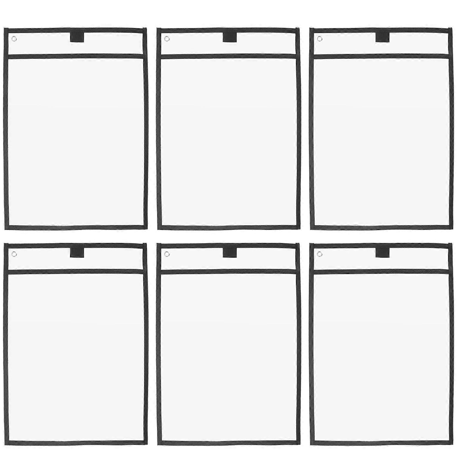 6PCS Reusable Clear PVC Dry Erase Pockets Sleeves with 6PCS Pens for Office Classroom Organization Teaching Supplies (Black)