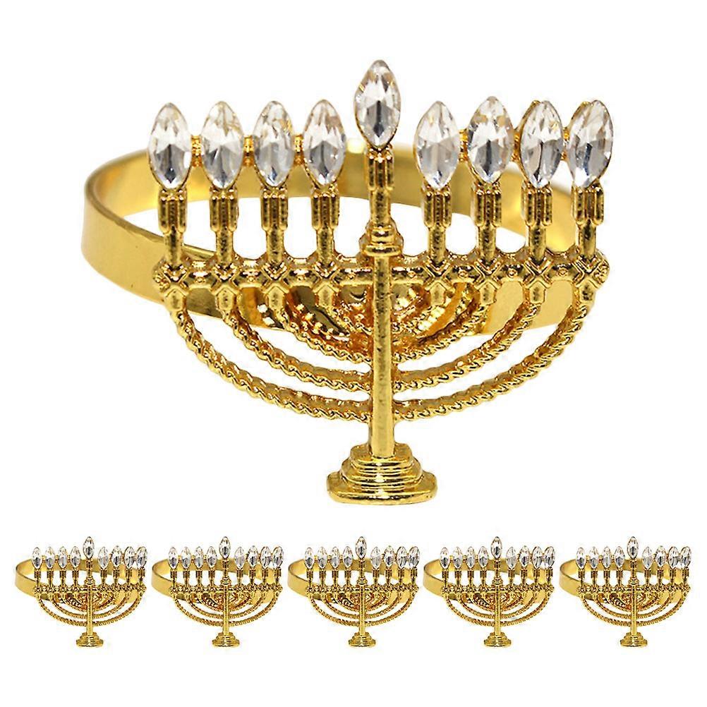 6pcs Alloy Napkin Rings Holders Hanukkah Menorah Shaped Napkin Rings Table Accessories