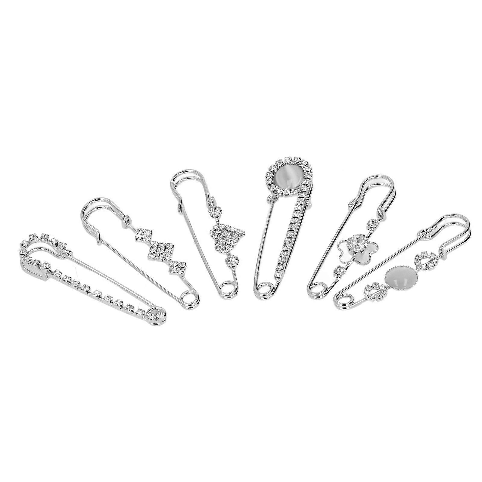 6pcs Safety Brooch Pins Elegant Style Sturdy Alloy Faux Crystal Women Brooch Pins For Sweater Shirt Dress