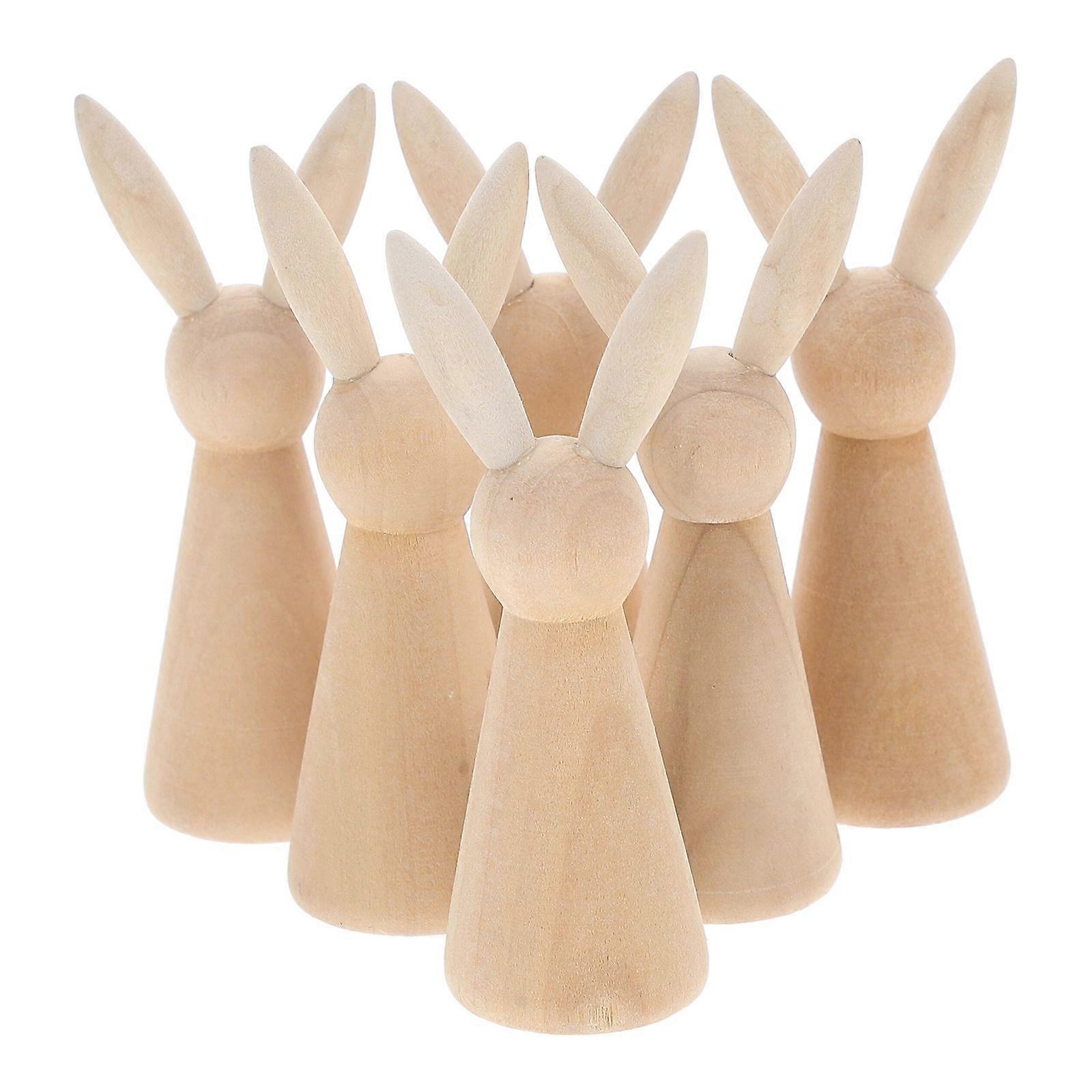 6pcs Unfinished Wooden Rabbit Easter Diy Crafts Bunny Figurines For Easter Home Decor Party Supplies Table Centerpieces