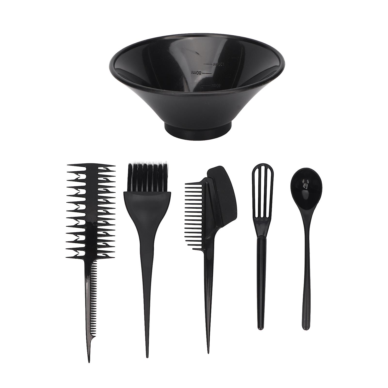 6pcs Hair Dye Kit Professional Multifunctional Soft Elastic Nylon Brush Hair Tinting Bowl Brush Set Black