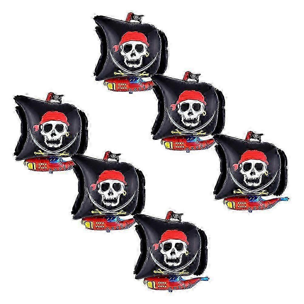 6pcs Funny Pirate Ship Pattern Aluminum Foil Balloons Decoration Kit Skull Design Balloons for Halloween Home Party Bar Club (Black)