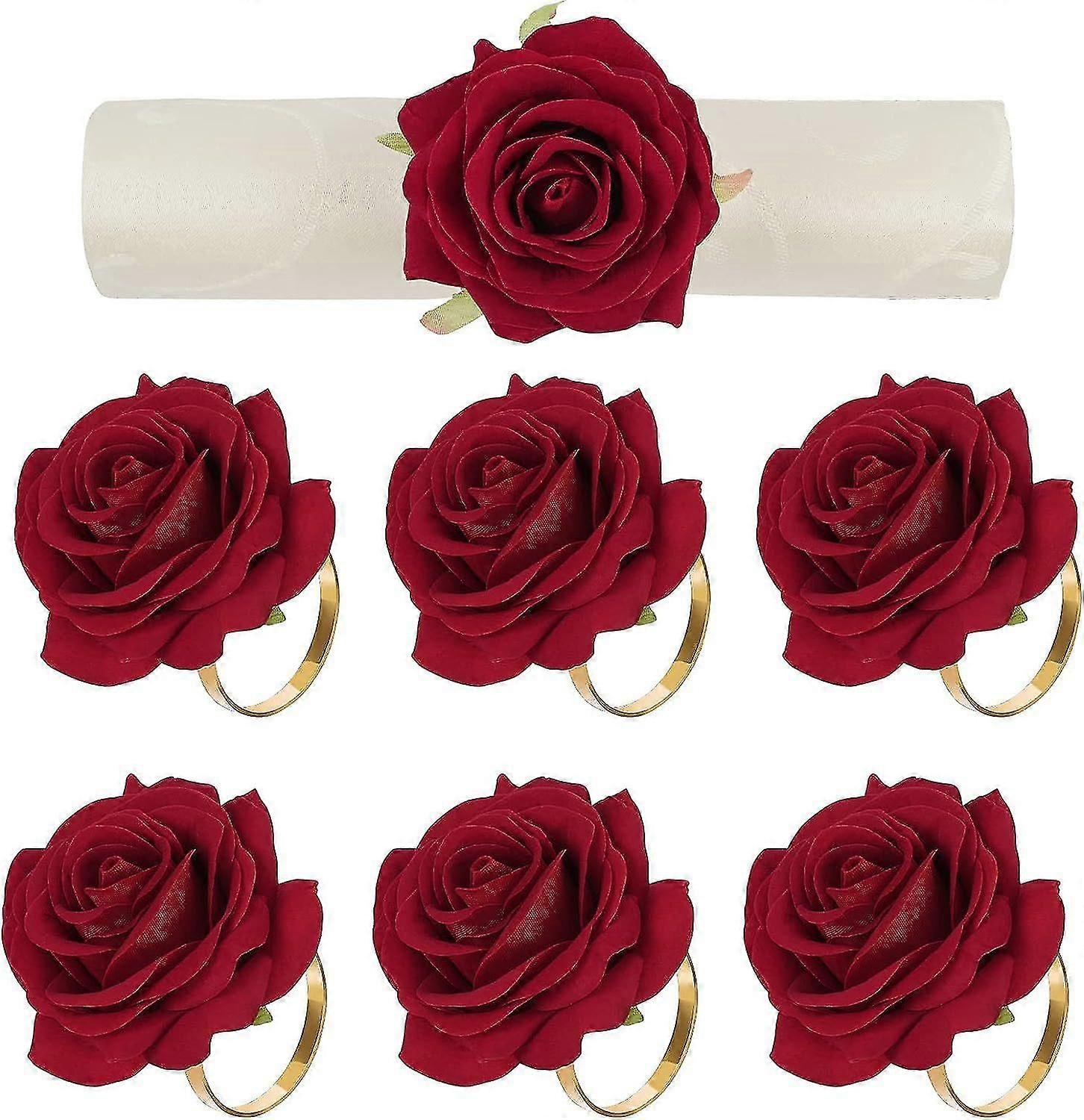 6pcs/set Stylish Napkin Ring Visual Effect Alloy Creative Rose Shape Napkin Clip For Kitchen Qinhai