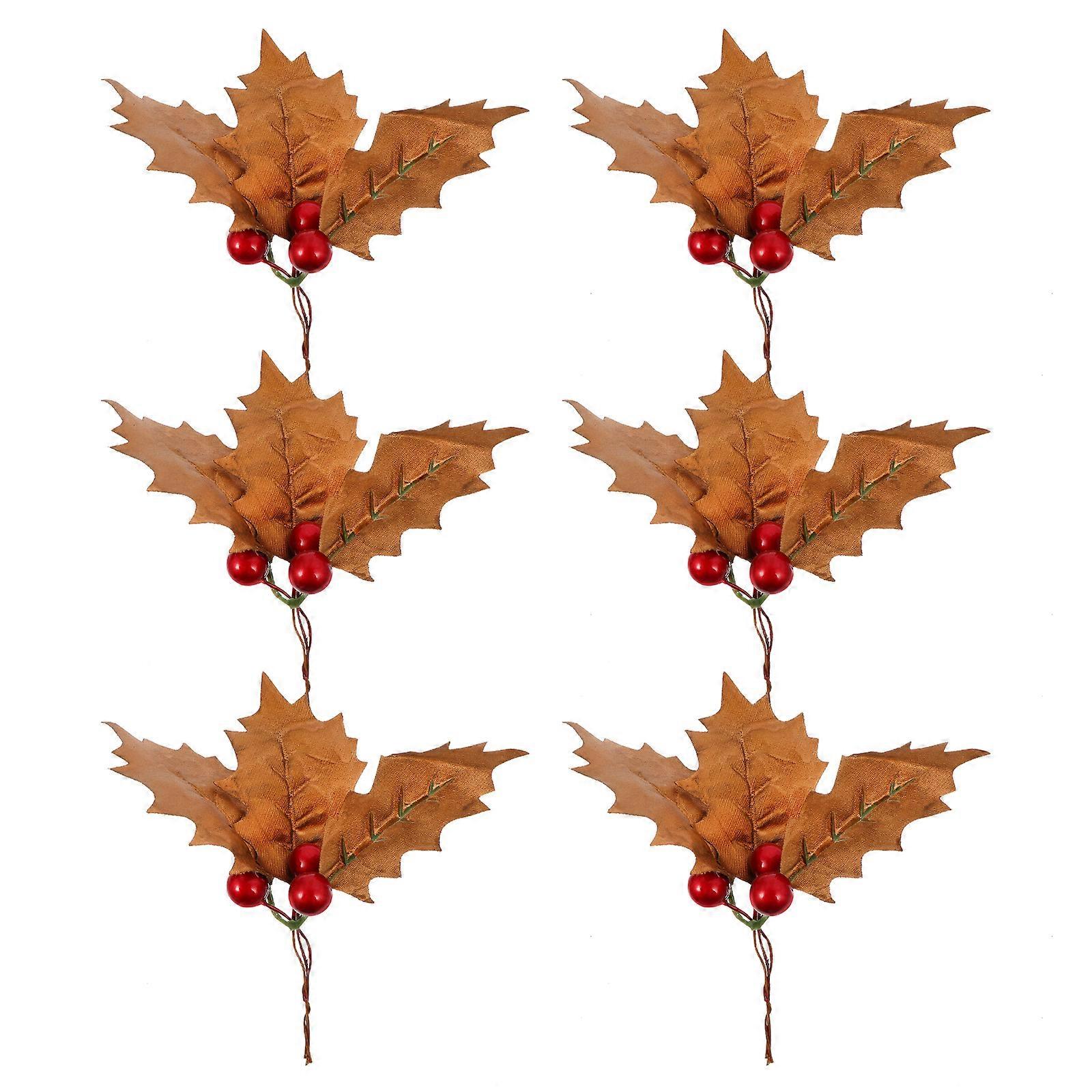 6pcs Faux Holly Leaves with Berries Christmas Home Decor for Wreaths, Bouquets & Party Arrangements