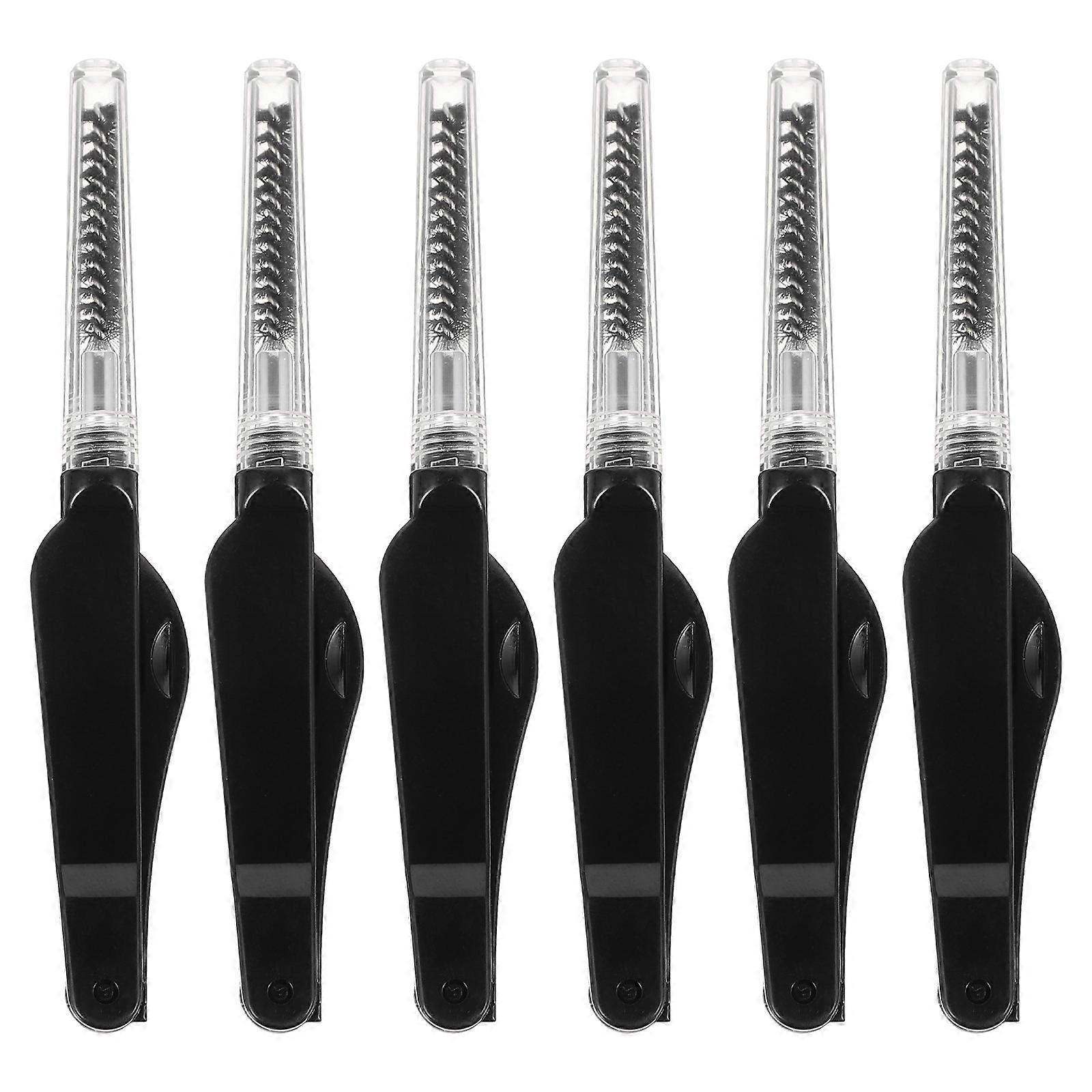 6pcs Portable Black Foldable Eyebrow and Eyelash Brushes for Women ABS Grooming Tools