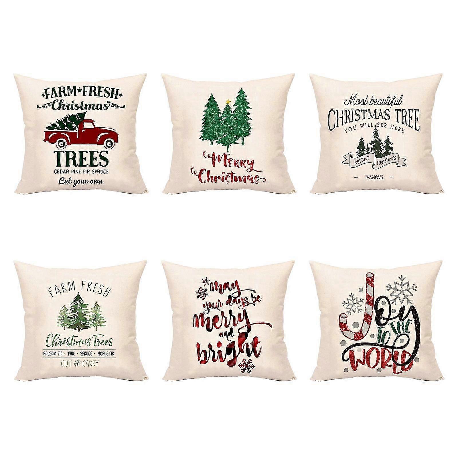 6Pcs Rustic Farm for Fresh Merry Christmas Throw Pillow for Case Xmas Tree Truck