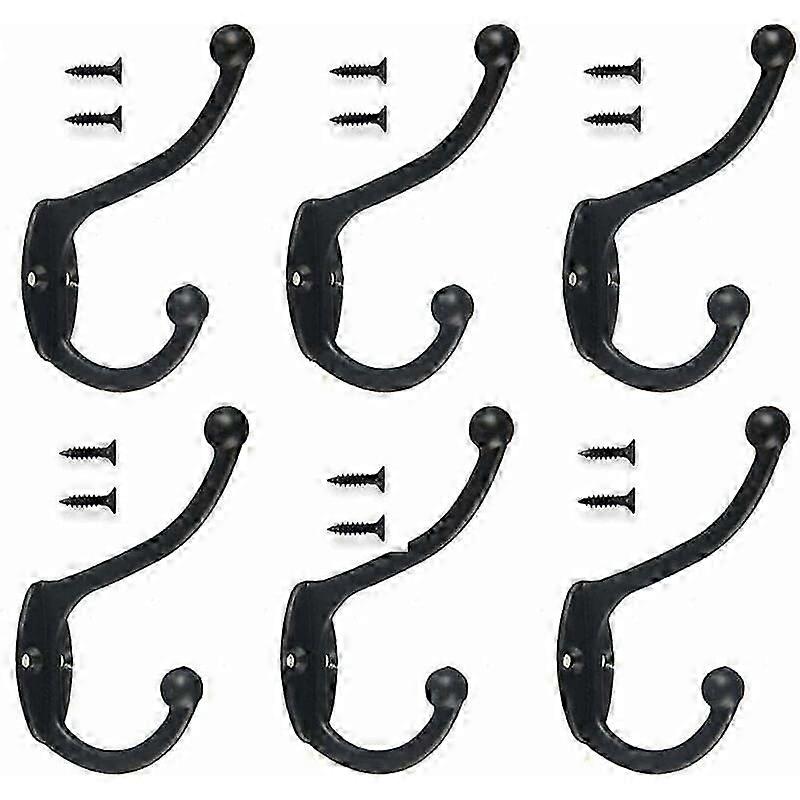 6pcs Retro Hook Coat Hook Wall Mounted Vintage Metal Door Hook for Bathroom Kitchen Bedroom Entryway - Black - Black