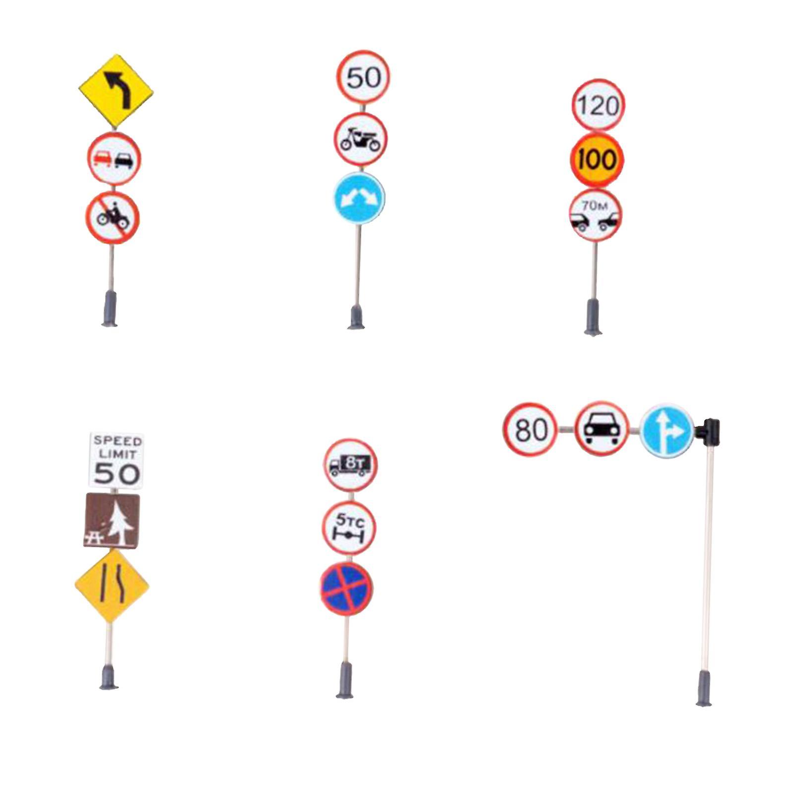 6pcs 1:87 HO Traffic Signage Train Highway Street Scenes Building Decorative