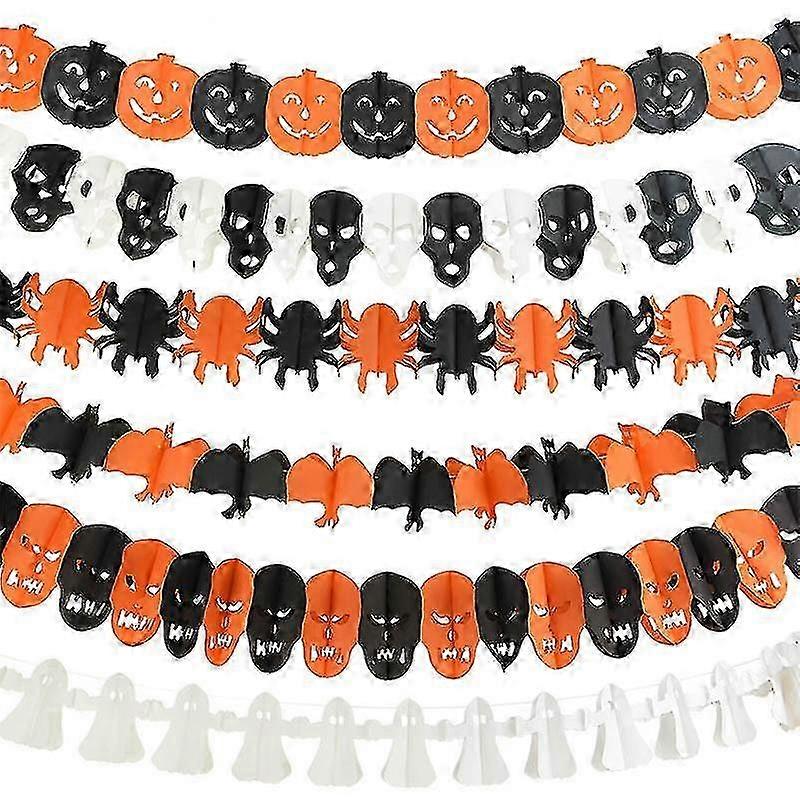 6pcs 300cm Halloween Hanging Garland Bunting Bat Ghosts Spider Paper Banner Decorations Horror Props