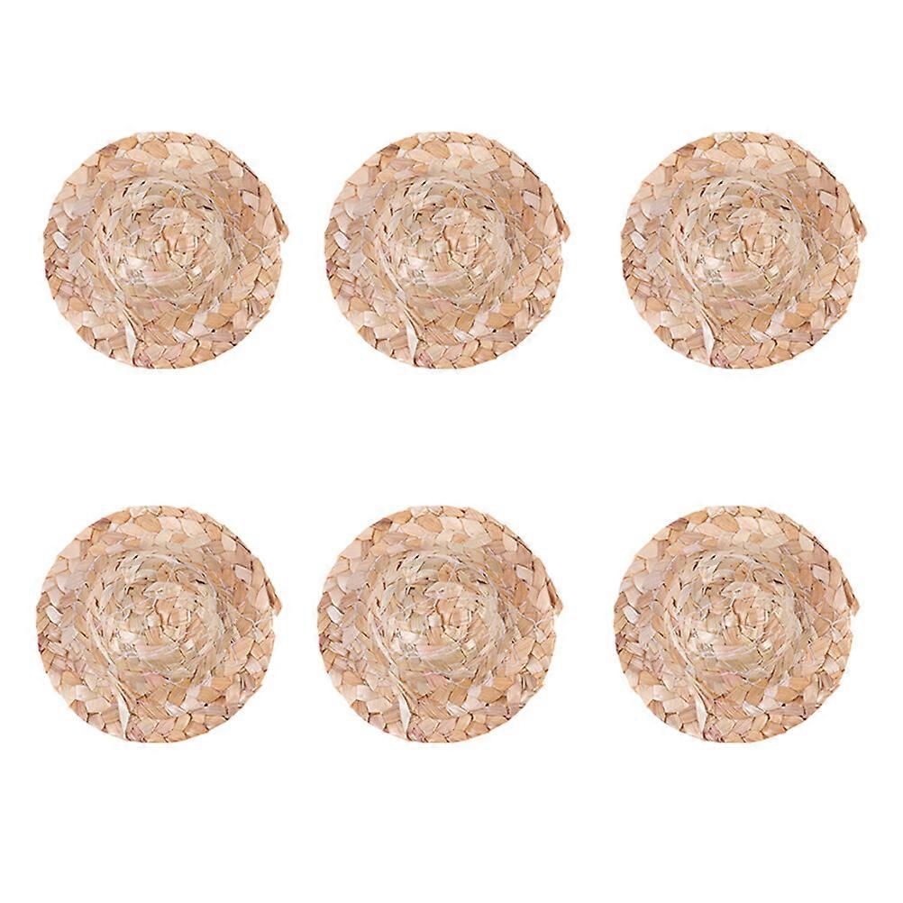 6PCS 8CM Handcraft Mini Straw Hat Decoration Doll Hat Decor Wide Brimmed Visor Woven for Doll Toy DIY