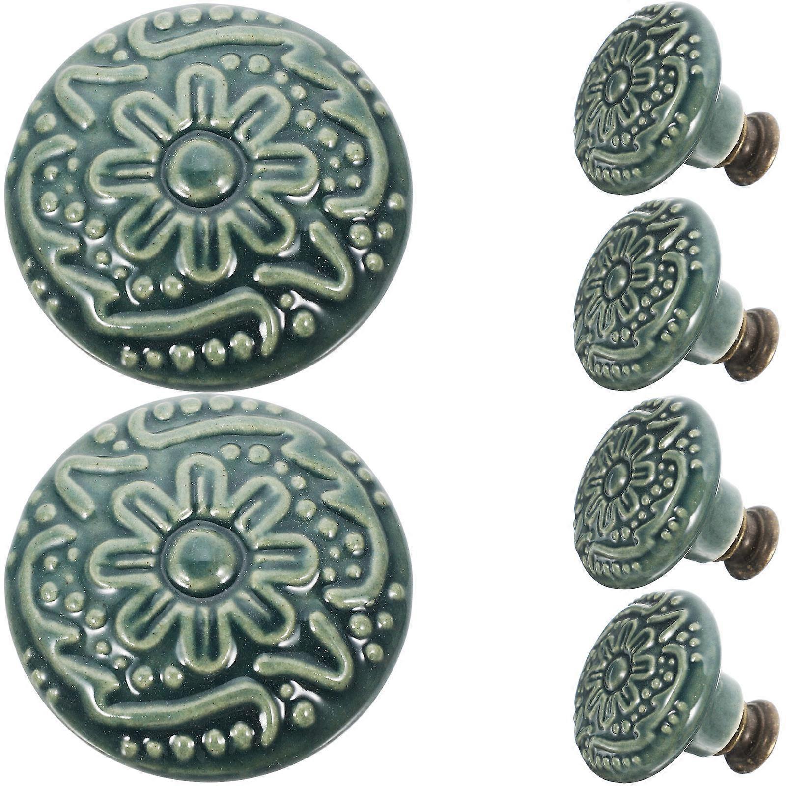 6Pcs Ceramic Cabinet Knobs Decorative for Drawer Light Green Ceramic Pulls