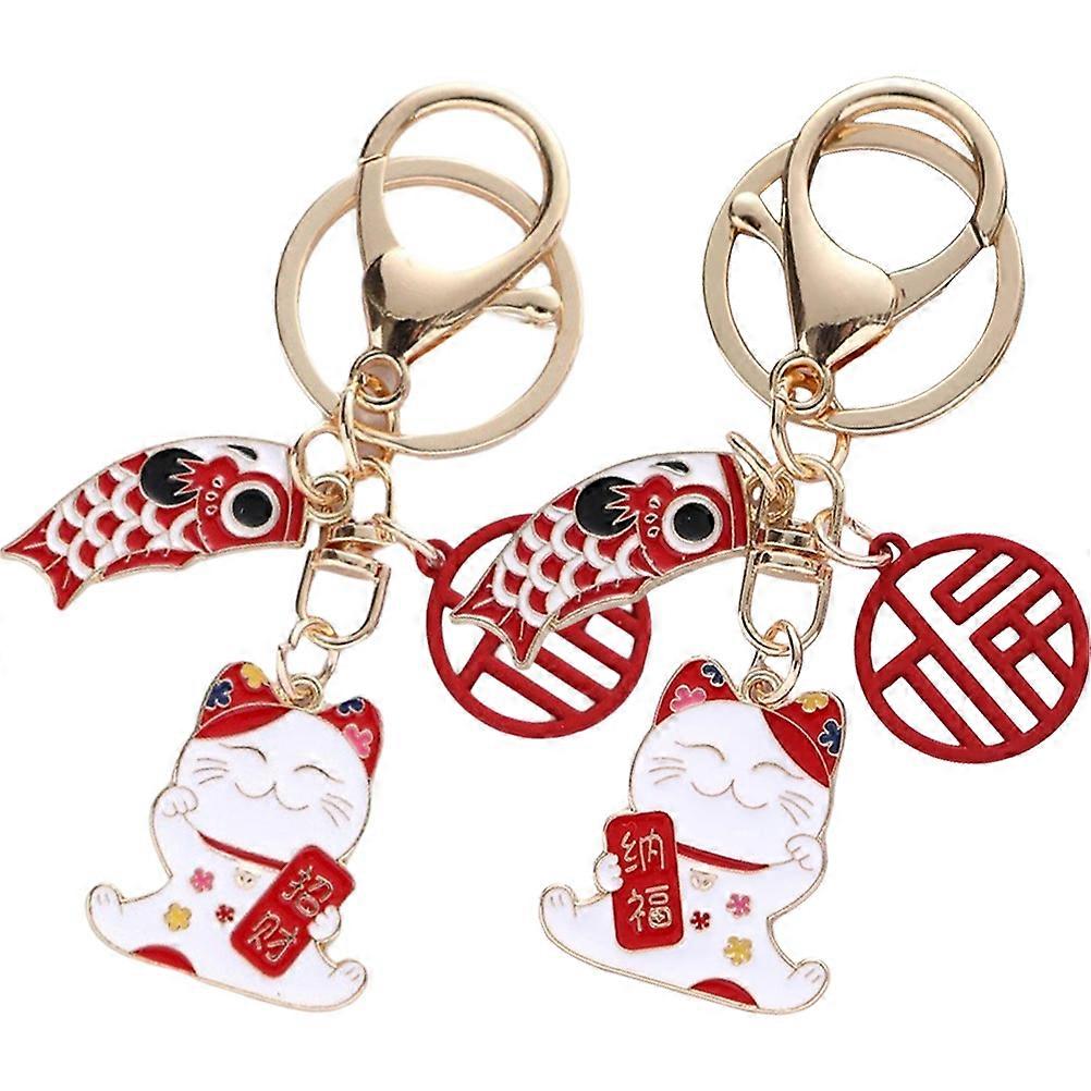 6Pcs Japanese Cat Key Ring Keychain With Assorted Color Suitable For Special Occasions Durable Decoration
