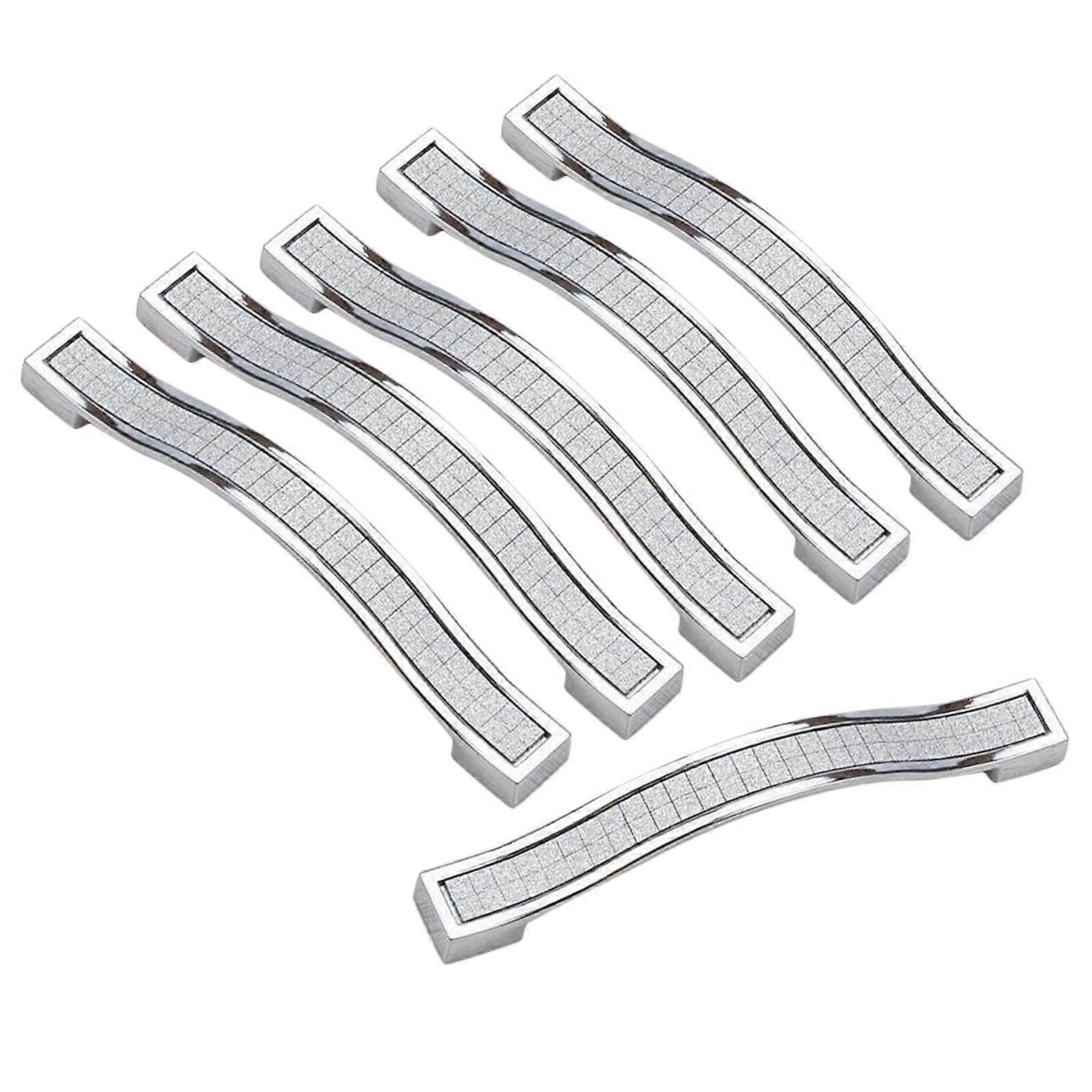 6Pcs Zinc Alloy Modern Cabinet Door Handles Drawer Pulls Knobs , Silver,
