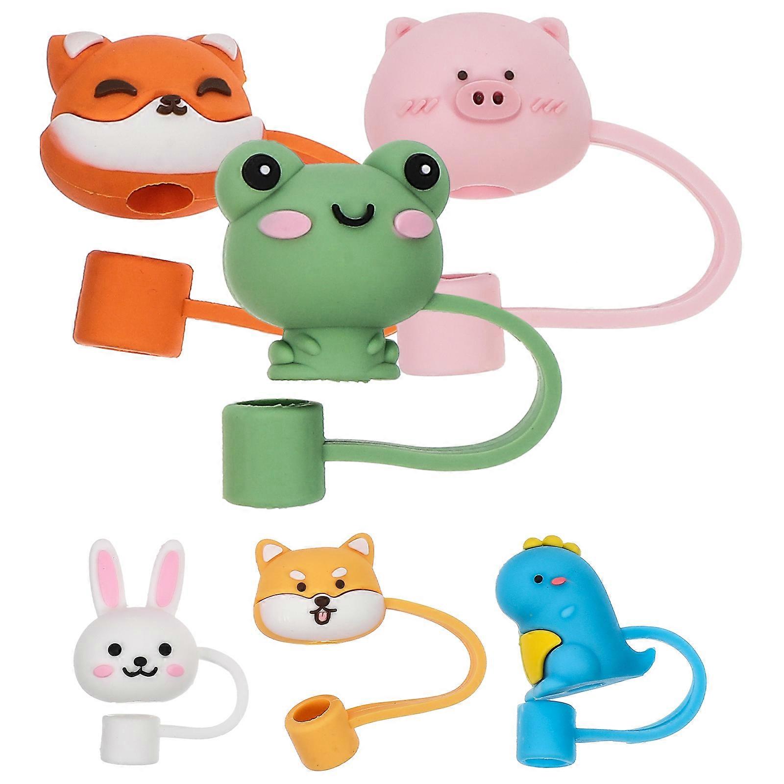 6pcs Hawaii Party Silicone Straw Caps Decorative Cartoon Animal Straw End Covers Reusable Straw Protector