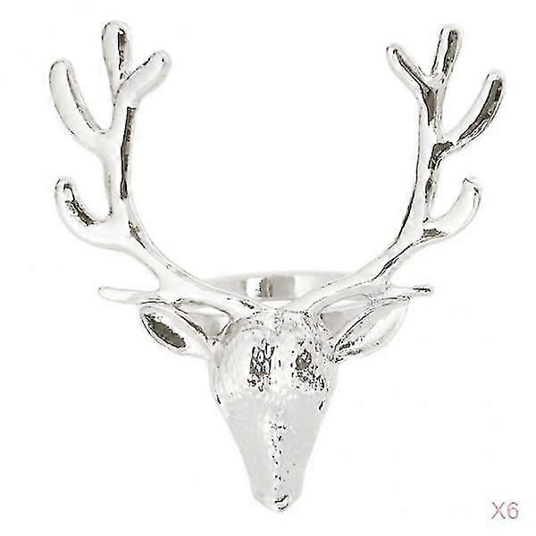 6x Christmas Reindeer Design Napkin Rings For Holiday Wedding Party Silver