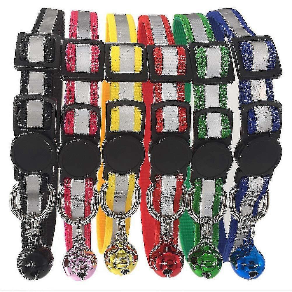 6x Reflective Design Adjustable Cat Collars More Safety Quick Release Safety Buckle With Bell(red, Pink, Yellow