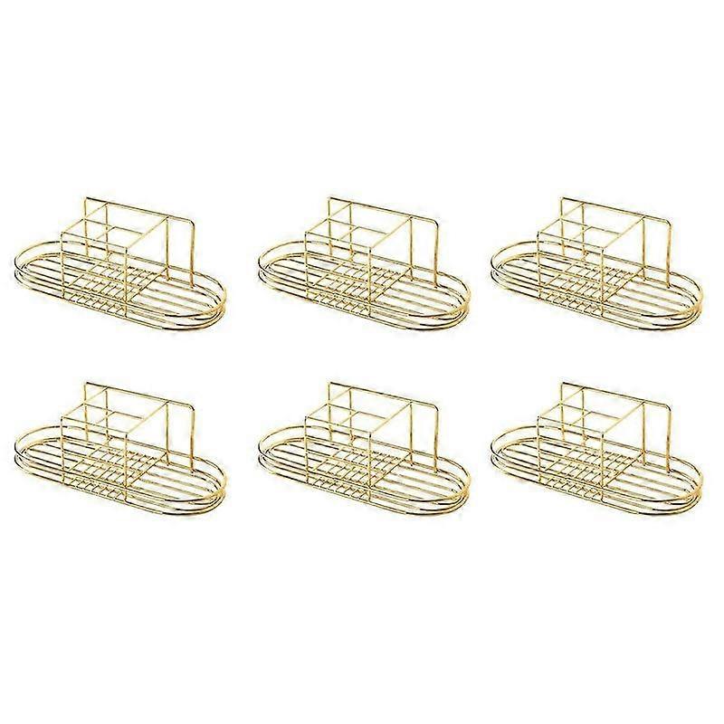 [ MATERIAL]This toothbrush holder is made of sturdy iron, gold plated , rustproof, safe, , waterproof, and can be used for long time.<br> [STORAGE HOLDER]This toothbrush holder has large capactiy and multi compartments to store your toothbrush, toothpaste, cups, , comb, cleanser and other items.<br> [HOLLOWED OUT]Hollowed iron wire structure, open storage design, breathable, allows air to circulate and dry quickly., no water accumulation.<br> [VARIOUS OCCASIONS]This toothbrush holder is modern and stylish, great for storing items in home bathroom, kitchen, bedroom, etc.<br> [SELF ADHESIVE]Wall mounted, save space, comes with strong adhesive hook, easy to install, or it can be placed directly on the bathroom counter.<br> size: 26 x 10.5 x 8.5cm<br> Material: iron<br> colour: gold<br> Package Contents:<br> 6 x Iron Home Toothpaste Toothbrush Holder<br> Only the above package content, other products are not included.<br> Note: Light reflection and different displays may cause the color of the item in the picture a little different from the real thing. The measurement allowed error is +/- 1-3cm.